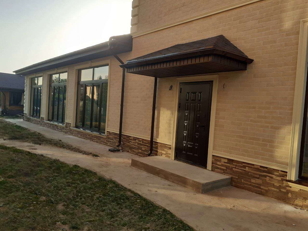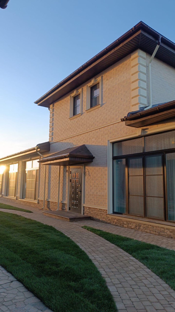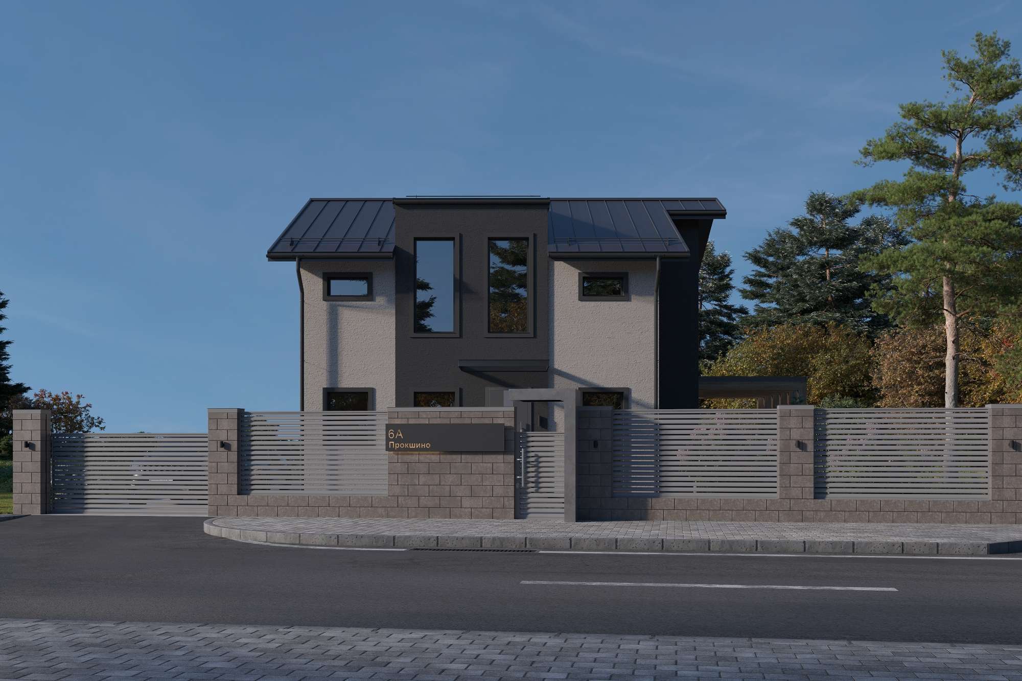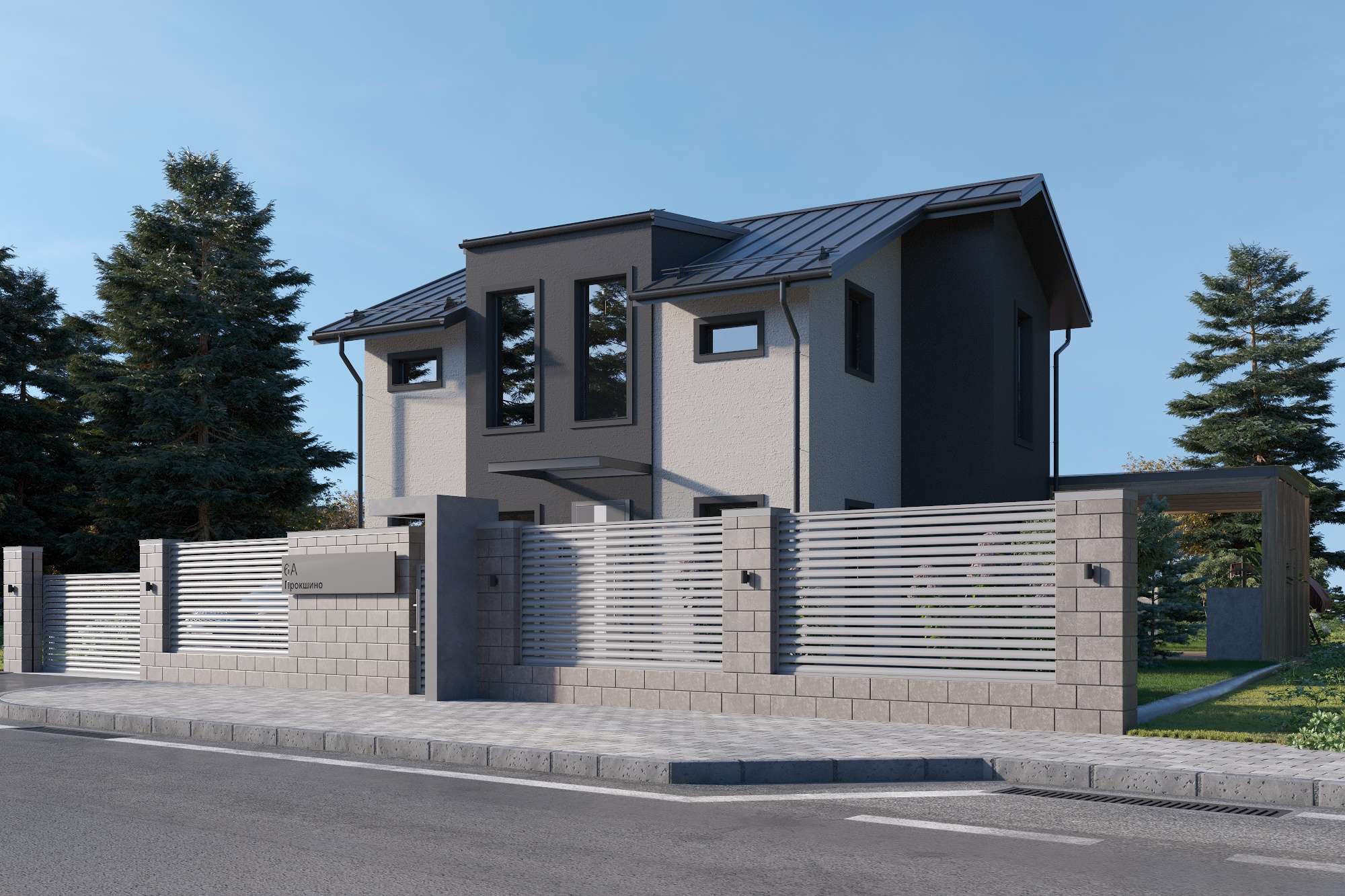 Внешние откосы и обрамление окон: 3D рамой выполнены из металлопрофиля цвет графит;