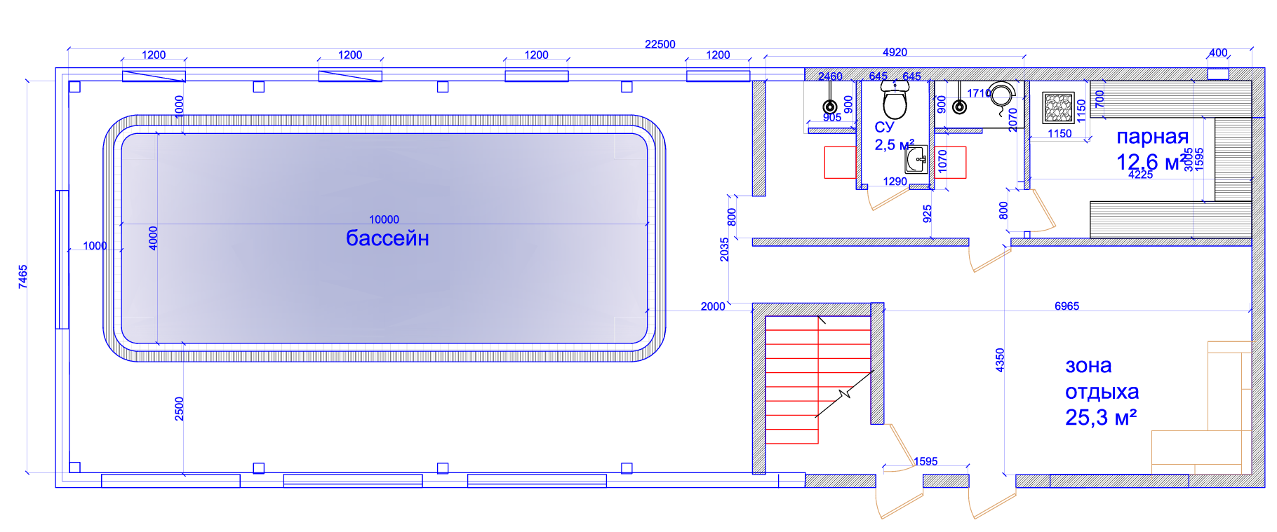 Зона под чашей бассейна 90 кв.м.