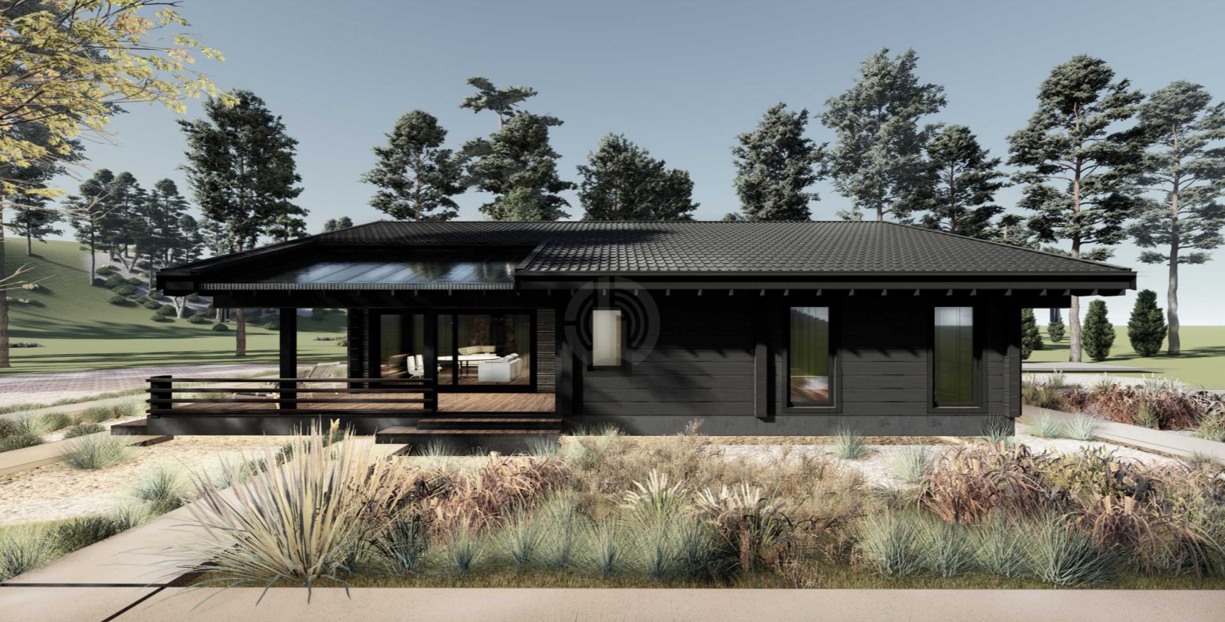 Внутреннее пространство дома зонируется функциональными блоками, что помогает создать идеальную среду с разными сценариями жизни в доме.
