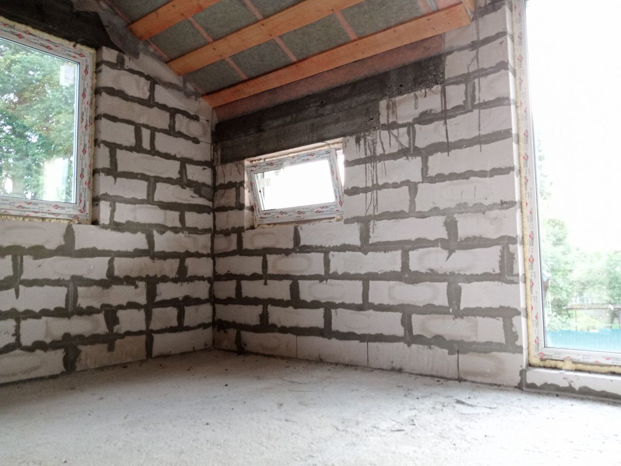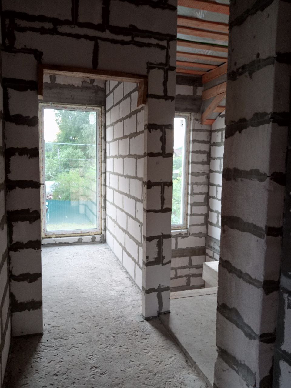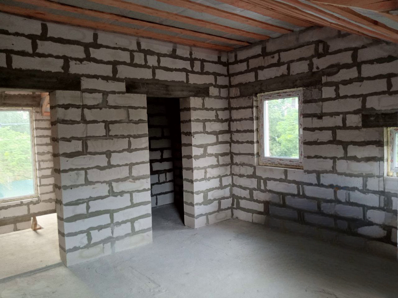 Внутренние несущие стены и перегородки: газобетонные блоки;