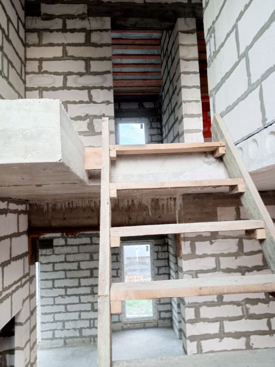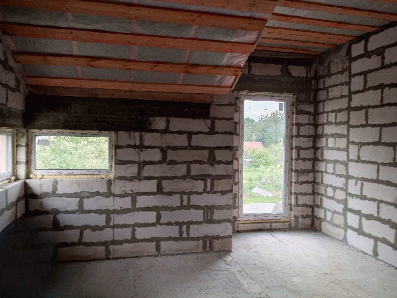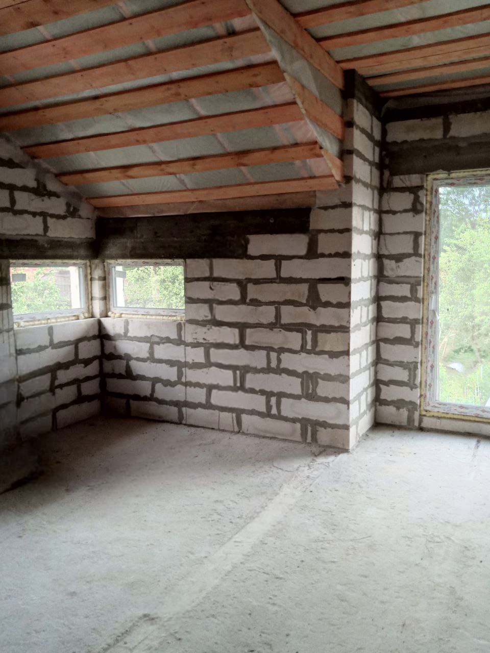Внутренние несущие стены и перегородки: газобетонные блоки;