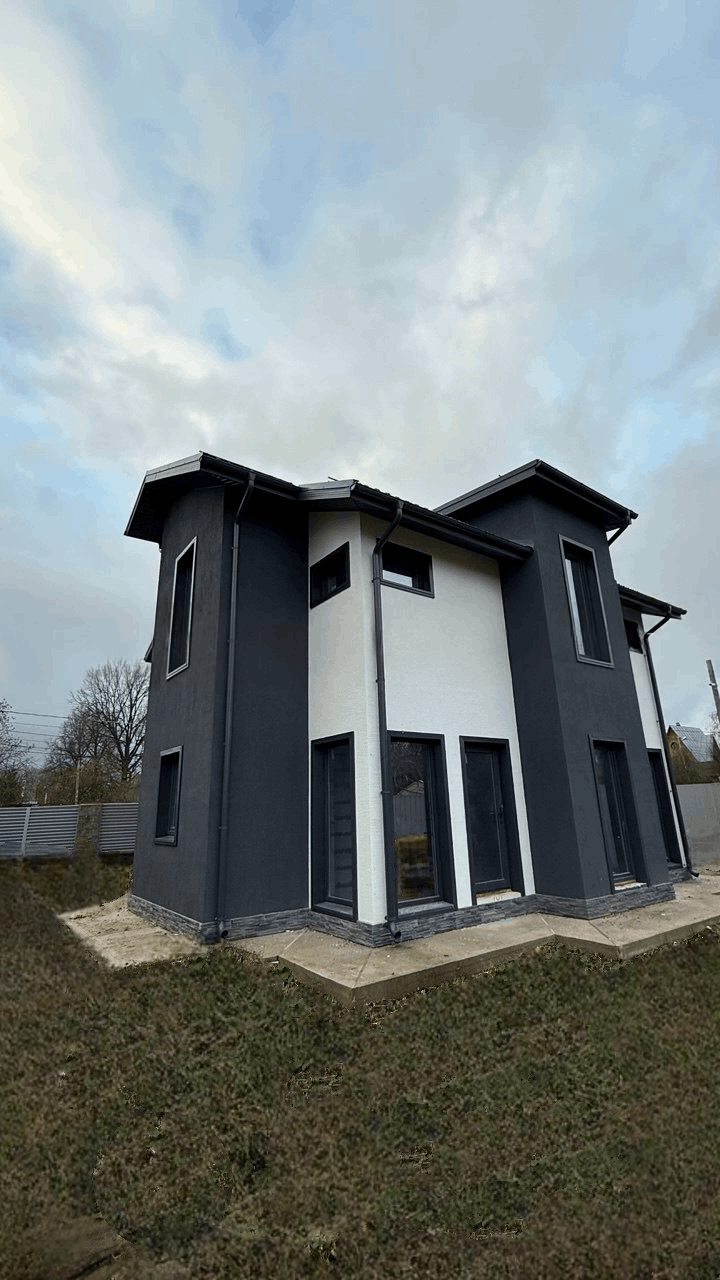 Дом 160 м.кв. в современном Европейском стиле. Контрастная архитектура и современная концепция комфортного проживания делают этот дом настоящим домом мечты. Двускатная крыша со свесом гармонично сочетается с плоскими крышами на фронтоне, это создает современную интерпретацию Европейского стиля загородного дома. |